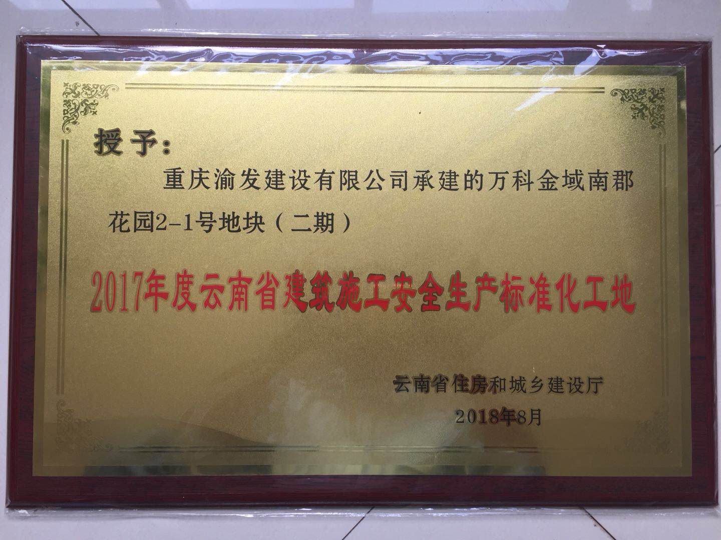 熱烈祝賀云南公司兩項(xiàng)目榮獲2017年度“云南省建筑施工安全生產(chǎn)標(biāo)準(zhǔn)化工