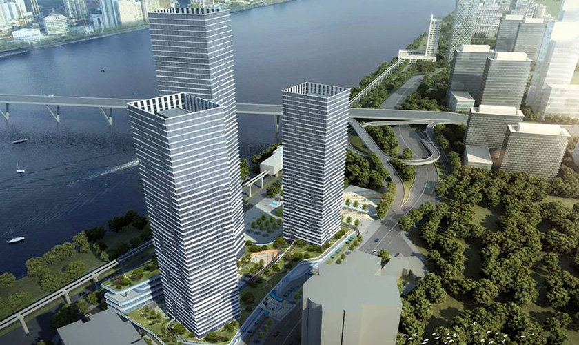 項目位于重慶市渝中區(qū)黃花園,總建筑面積18.17萬㎡,為現(xiàn)澆框架剪力墻結(jié)構(gòu),由3棟超高層及裙房、地下車庫組成。