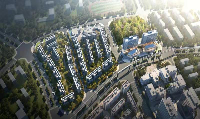 其中北地塊主要建筑物為2棟商業(yè)樓(1棟13F/-2F,1棟14F/-2F),總建筑高度51m。中地塊主要建筑物為11棟住宅樓(8F/-2F),1棟商業(yè)樓(2F),1棟幼兒園(3F),1棟社區(qū)服務中心(3F),住宅建筑高度26.3m。南地塊主要建筑物為11棟住宅樓(8F/-2F),2棟商業(yè)樓(1F),總建筑高度26.3m。